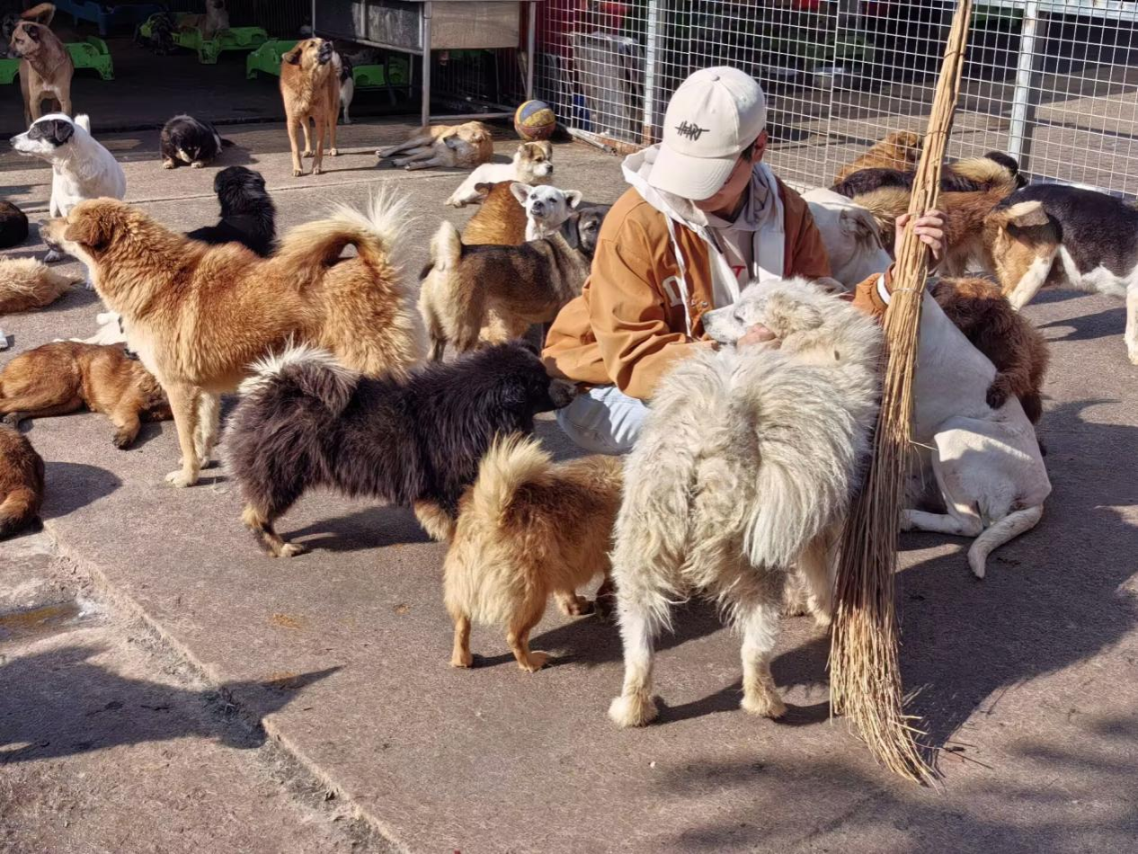冬日暖阳下,流浪狗对志愿者们的到来表现得十分热情。起初大家还不习惯现场略显杂乱的环境和小狗们的热情,在工作人员的引导下,志愿者们即刻进入工作状态,拿上清扫工具对狗舍内的狗毛、排泄物等进行清扫。