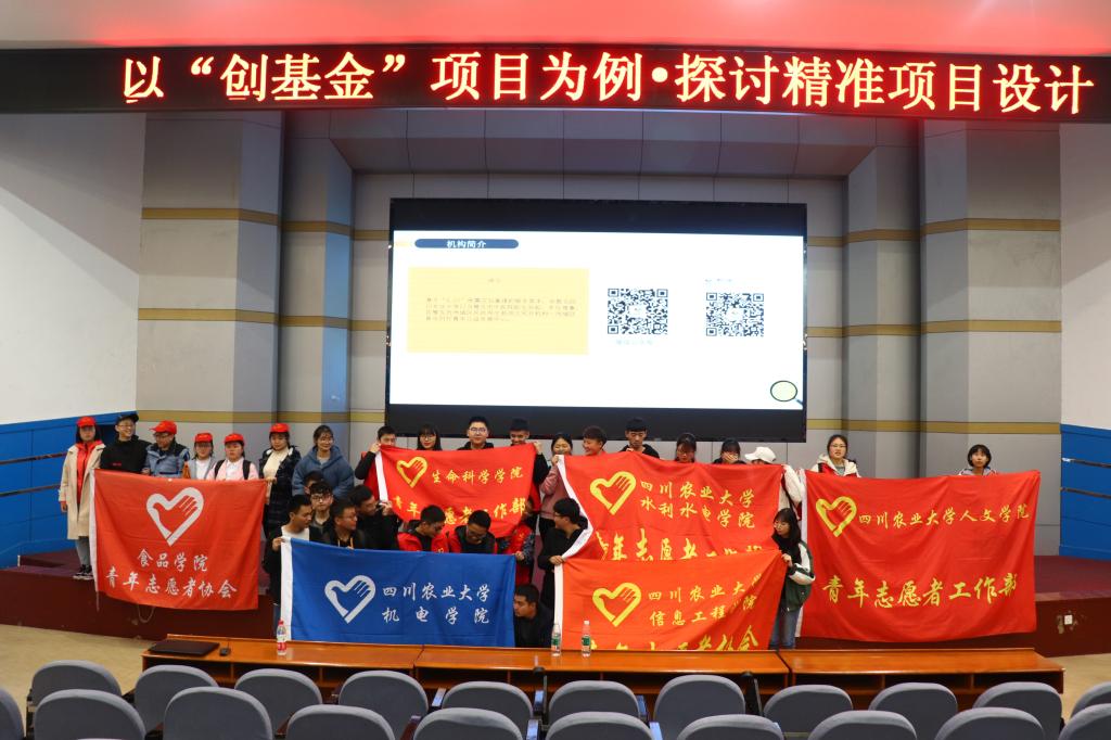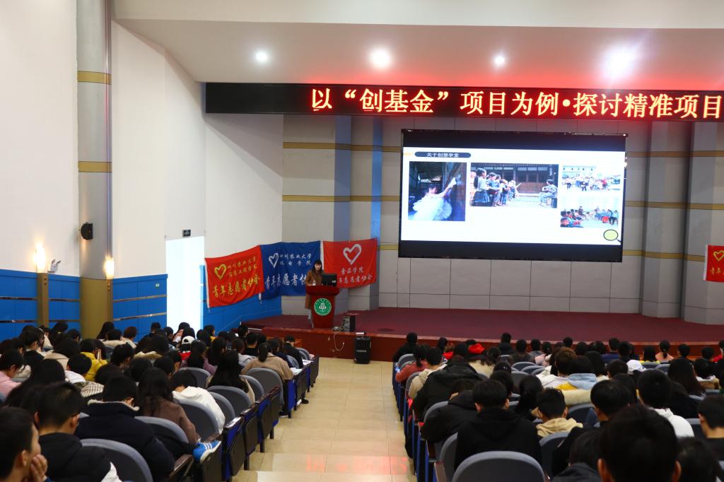 为提高太阳成集团tyc151cc志愿者整体素质和志愿者服务质量,从而更好地开展志愿服务活动,3月9日16点20分,太阳成集团tyc151cc、机电公司、食品公司、生命科学公司、人文公司、水利水电公司于逸夫楼联合开展了“以‘创基金’项目为例·探讨精准项目设计”主题志愿者培训活动,并邀请了普乐同行青年公益发展中心的罗敏老师作为主讲人,向在座的四百余位同学讲授关于志愿者活动的心得。