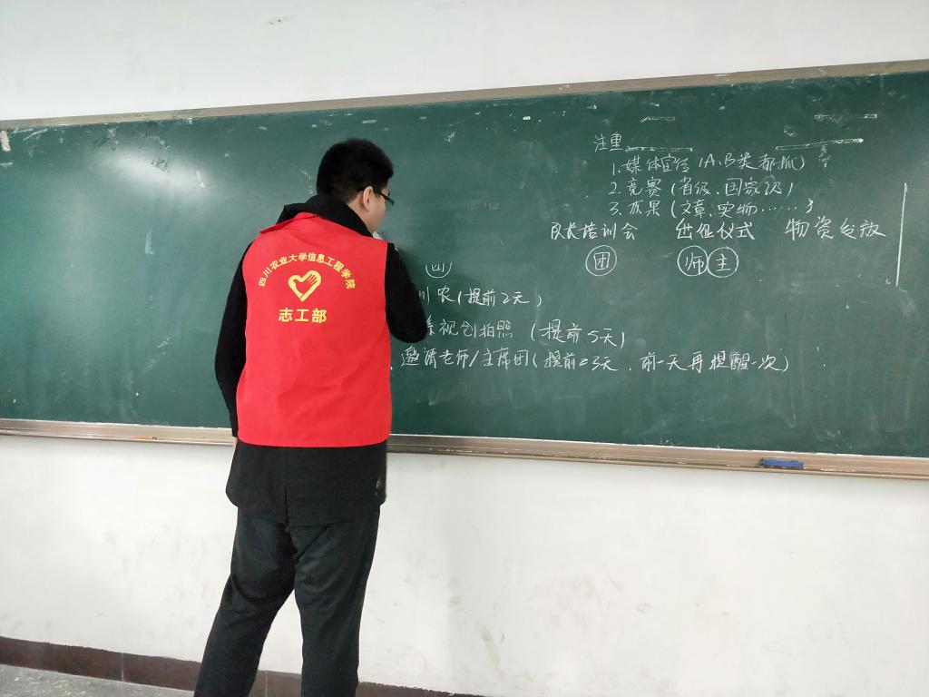 此次活动旨在弘扬爱护公共卫生的意识,共创文明校园,给川农学子带来一个良好的学习环境。活动中,志愿者积极打扫,清理短小细碎粉笔,擦拭黑板上留下的无效信息,清理桌框里的垃圾,将员工遗留的物品集中放在收置台上。真正做到了耐心仔细,毫无纰漏。清扫过程中放轻动作,减少对教室内其他同学的影响,礼貌大方,彰显了志愿者优良的精神面貌。