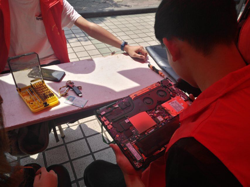 活动中,志愿者们为前来“就诊”的电脑,检查磁盘错误、删除硬盘垃圾,优化系统设置,更为有的“病重”的电脑,进行“手术”,拆机修理。