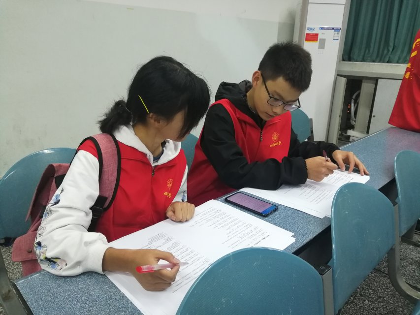 图二:考试结束,志愿者认真批改试题