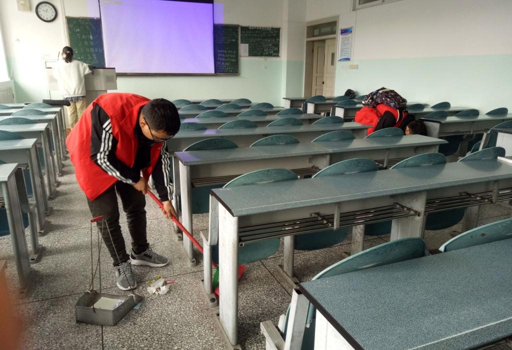 为提高青年学子的环境卫生意识,营造洁净舒适的学习环境。11月10日中午,信工院团委志愿服务部带领计算机202002班的10余名志愿者在十教开展以校园绿色环保为主题的教室清洁志愿活动。
