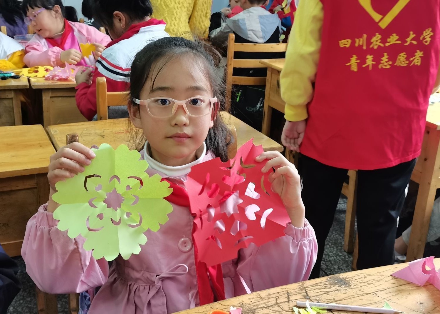 为弘扬志愿服务精神,值此春分时节,太阳成集团tyc151cc团委志工部联合员工手工联合协会,开展“白纸为你,裁剪世界”活动。活动在雅安市太平实验小学开展,旨在通过剪纸艺术让来自三年级的小朋友足不出户感受春天的气息。活动不仅提升了小朋友的精神风貌,还培养小员工的对剪纸的兴趣。同时为剪纸艺术爱好者提供实现自我价值的舞台,传播剪纸文化。