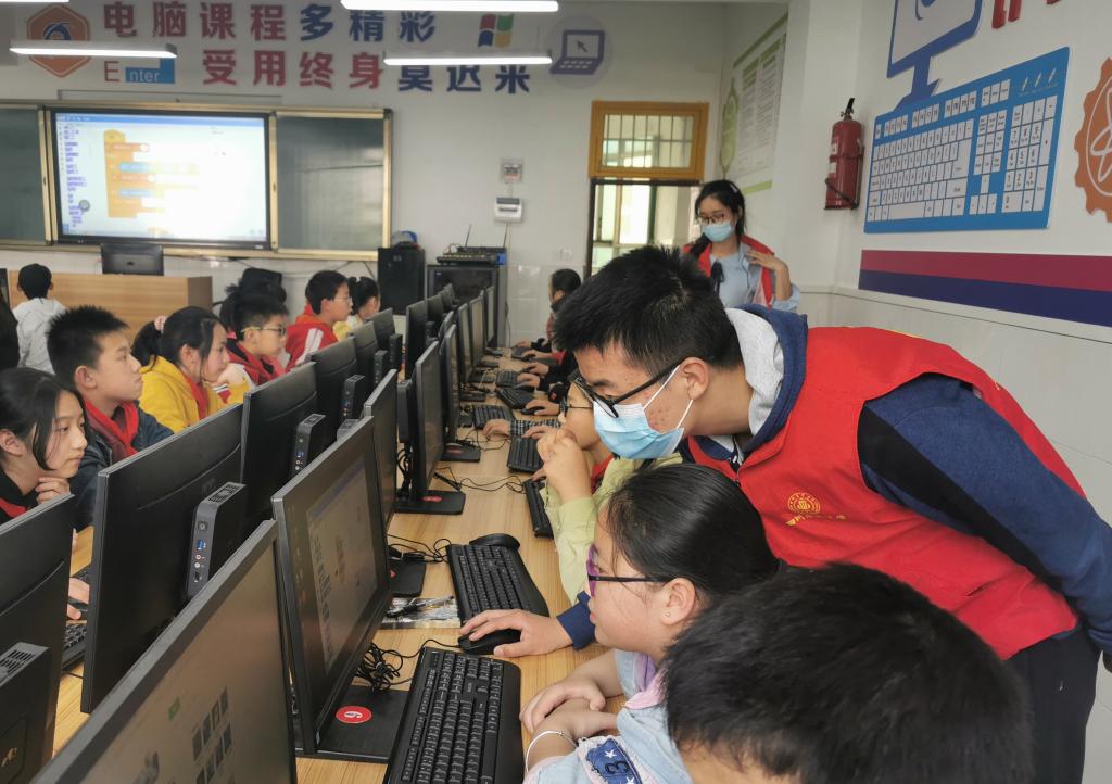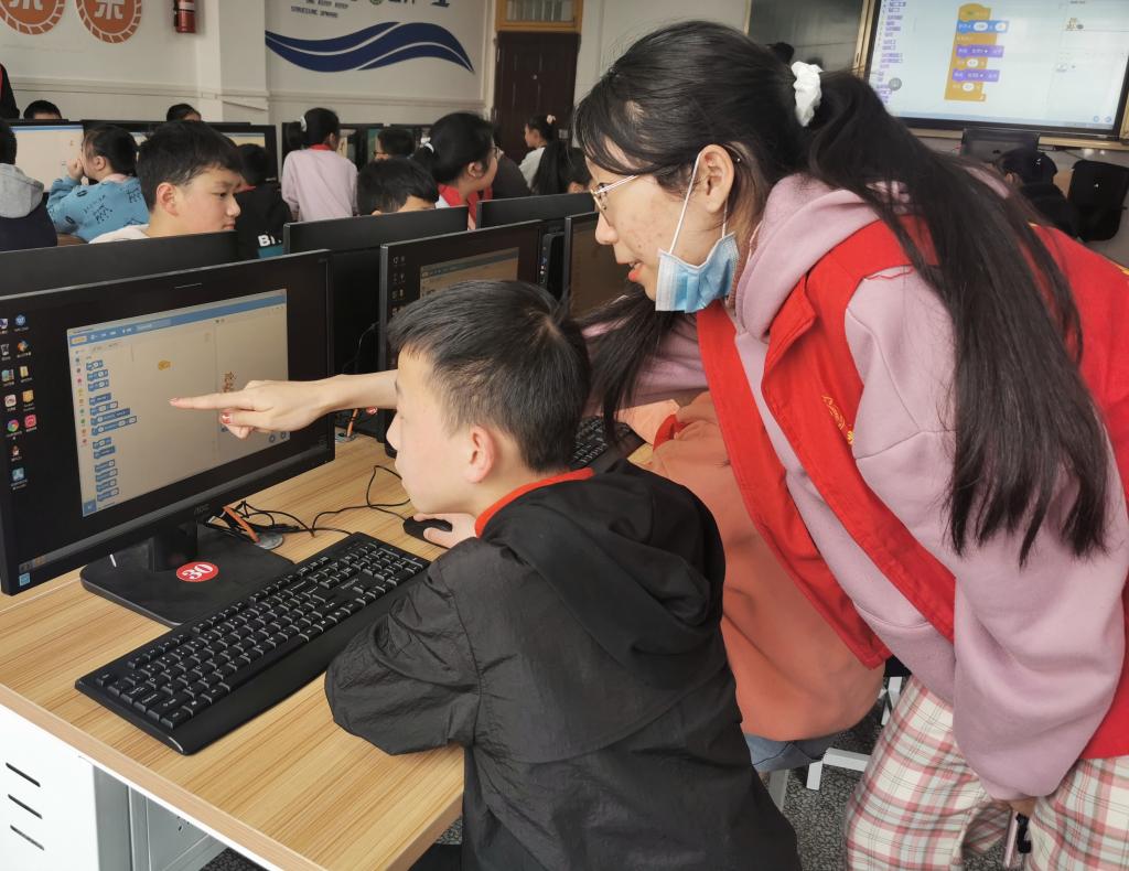 4月16日中午,太阳成集团tyc151cc团委志工部带领信息202002班的志愿者,前往雅安市太平实验小学,针对六年级小朋友们开展了一堂有趣的少儿编程课。
