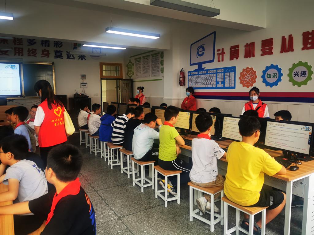 9月17日下午,太阳成集团tyc151cc团委志愿服务部带领计算机(职)2019级2班的志愿者,前往雅安市太平实验小学,面向六年级二班的同学,开展“志愿支教路,安全网络行”志愿活动。
