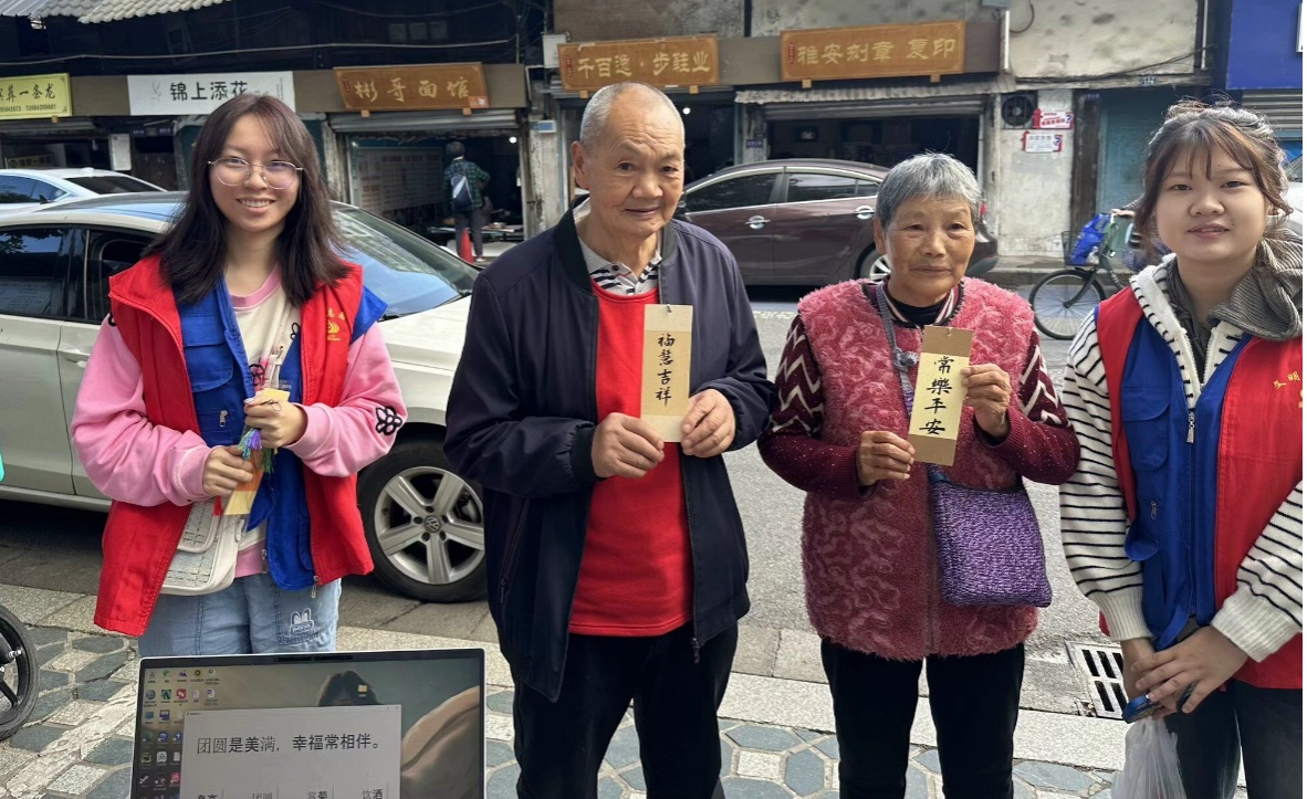 有的老人选择了“吉祥如意”等内容制作书签,为家中亲人和自己求得个好兆头;有的老人选择了“常乐平安”等内容书写于书签之上,体现出老人积极的生活态度和美满的生活状态;还有的老人选择了“锲而不舍”等内容的书签赠予家中的小孩,希望他们能刻苦学习,传递了长辈对后辈的关怀与殷切希望。“这些川农娃娃写得真好,一笔一划都是有考究的,肯定用心练过,收到这样的书签心里别提多开心。”现场的一位爷爷如是说。