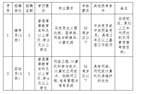 二、招聘名额及具体条件