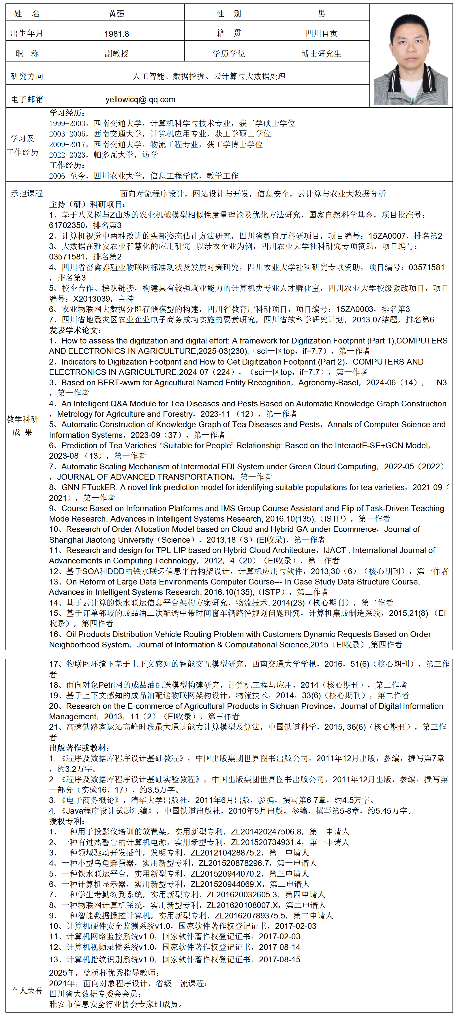 黄强老师简介
