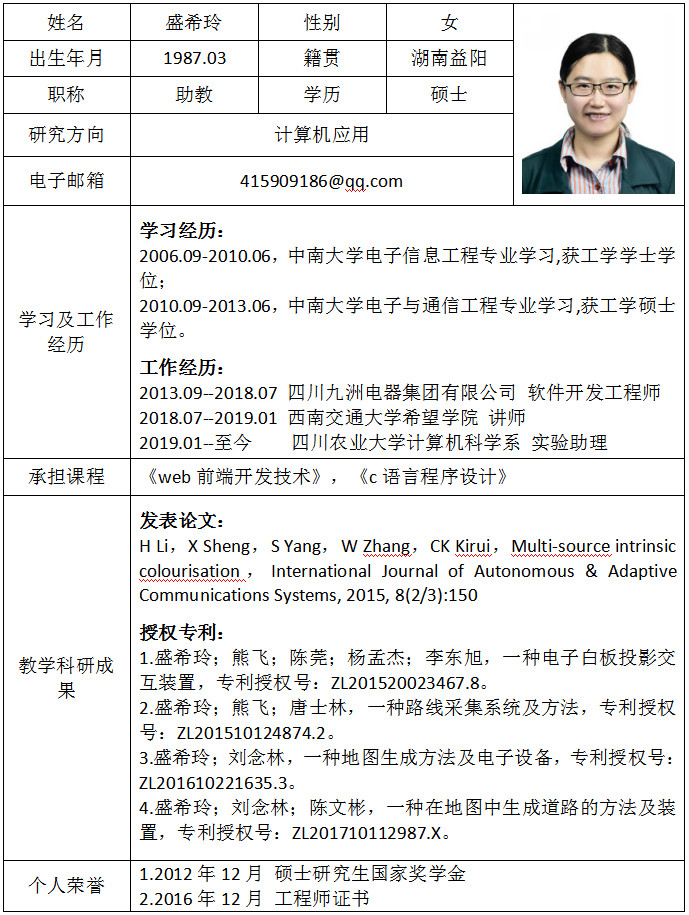 盛希玲老师简介