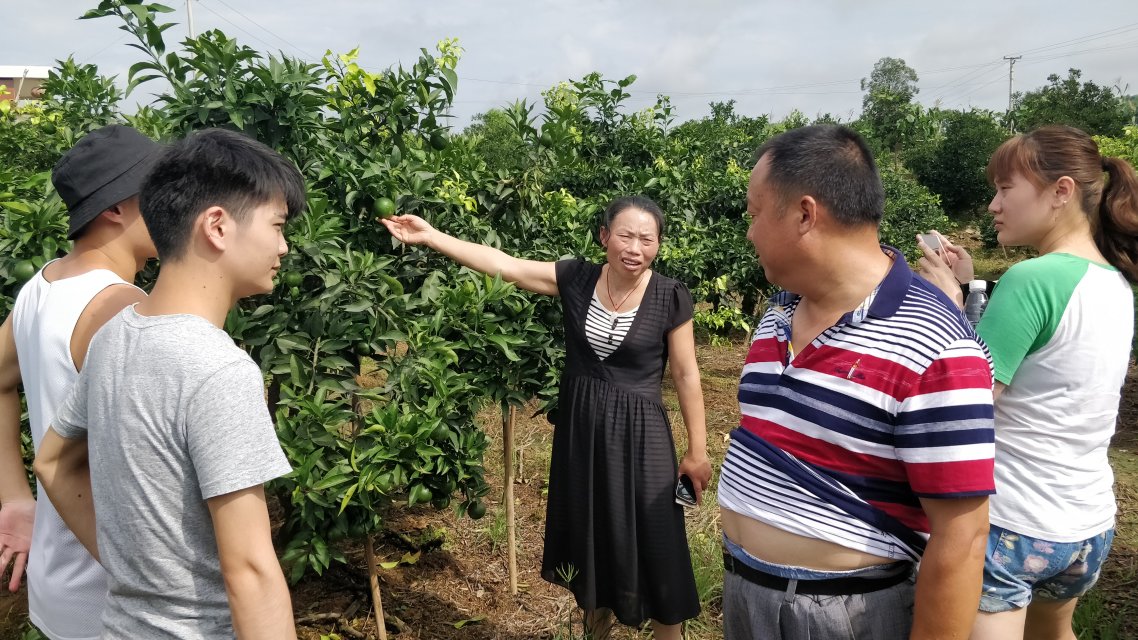 农户为“逐梦青春先锋队”队员讲解柑橘培育知识