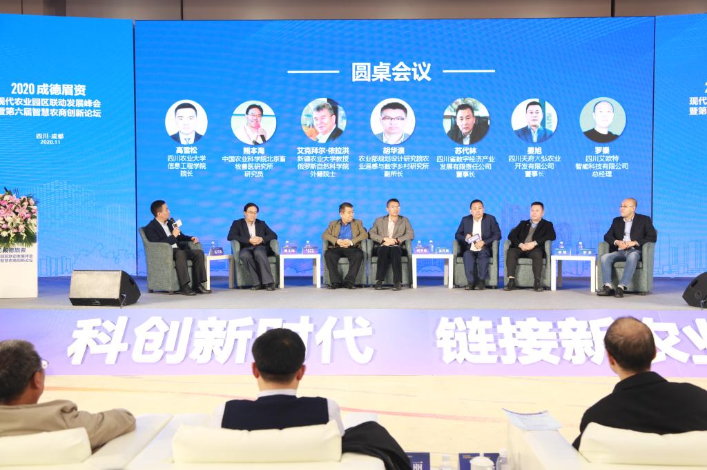 公司经理高雪松教授主持第六届智慧农商创新圆桌会议,来自中国农业科公司北京畜牧兽医研究所研究员、畜牧信息中心主任、中国畜牧兽医学会信息技术分会理事长、德阳智慧农业研究院经理熊本海,新疆农业大学教授、俄罗斯自然科公司外籍院士艾克拜尔·依拉洪,农业农村部规划设计研究院农业遥感与数字乡村研究所副所长、高级工程师、中国卫星导航定位协会农业农村专业委员会秘书长胡华浪三位专家,以及四川省数字经济产业发展有限责任公司董事长苏代林、四川天府大弘农业开发有限公司董事长晏旭、四川艾欧特智能科技有限公司总经理罗秦三位企业家代表就智慧畜牧、数字田园、数字乡村、产业创新等内容进行了探讨和交流。