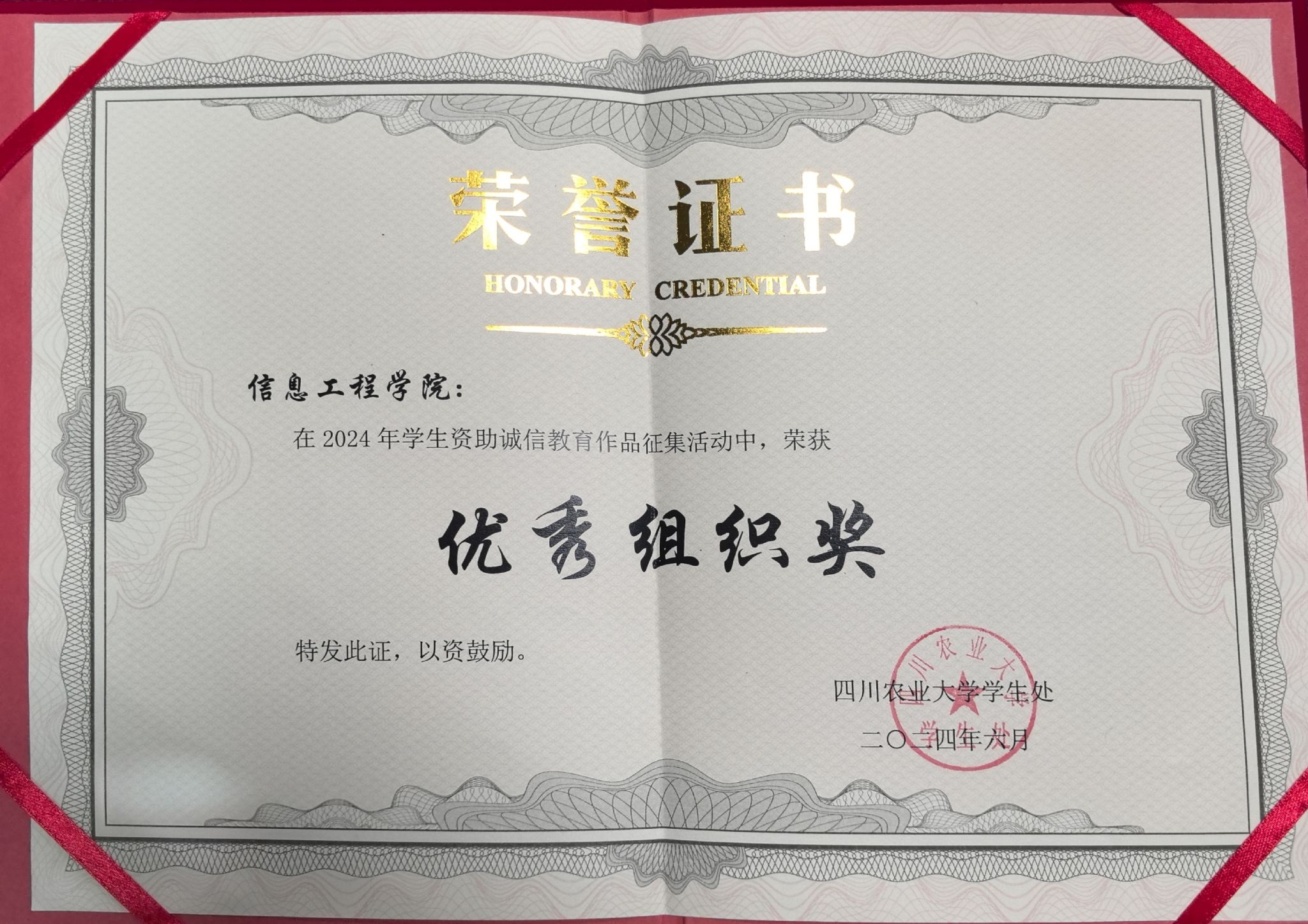 2024年员工资助诚信教育作品征集优秀组织奖