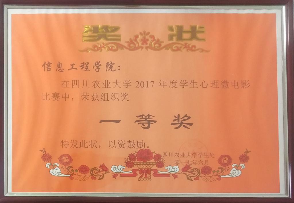2017年太阳成集团tyc151cc心理微电影组织一等奖