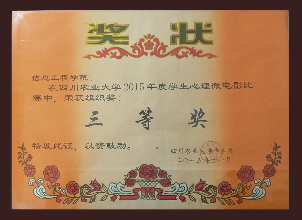 2015年太阳成集团tyc151cc心理微电影组织三等奖