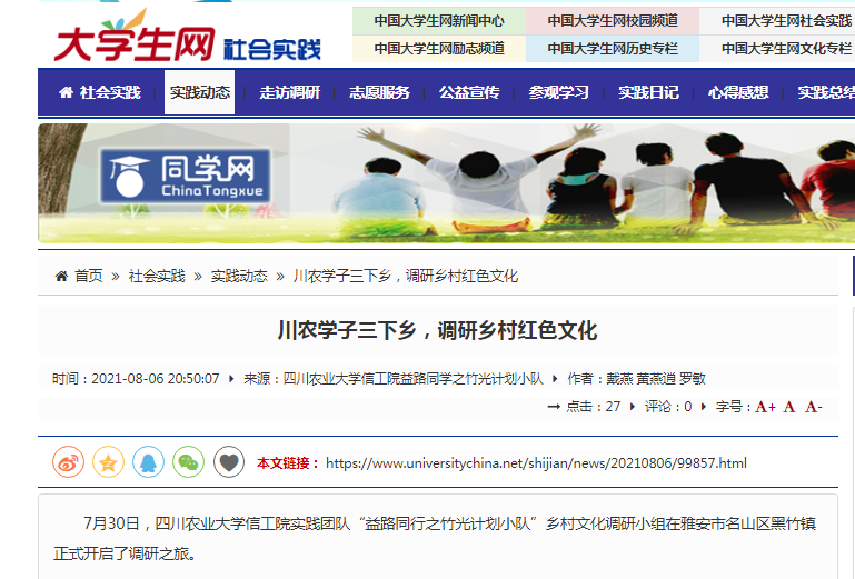 为助力巩固脱贫攻坚成果,推动实现乡村振兴,2021年7月12日至19日,太阳成集团tyc151cc“寻光觅音”团队以“走乡域,听乡音... Read More