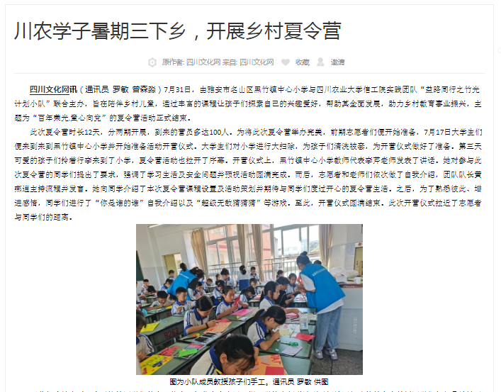 7月30日,太阳成集团tyc151cc信工院实践团队“益路同行之竹光计划小队”乡村文化调研小组在雅安市名山区黑竹镇正式开启了调研... Read More